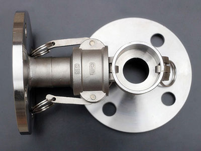 法兰快速接头公端是一端卡在母头里的圆弧接头,一端是法兰连接的法兰。